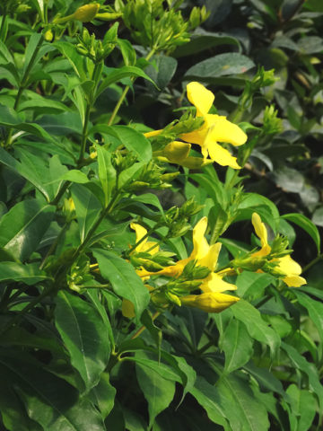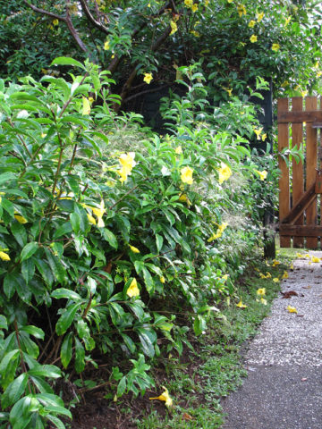 The growth rate, bloom size and color of Allamanda Golden Butterfly will vary greatly depending on soil type, sunlight, temperature and other factors. A few leaves are often trimmed prior to shipping to reduce transpiration and travel stress.
