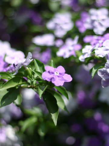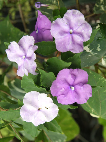 The growth rate, bloom size and color of Brunfelsia Floribunda will vary greatly depending on soil type, sunlight, temperature and other factors. A few leaves are often trimmed prior to shipping to reduce transpiration and travel stress.