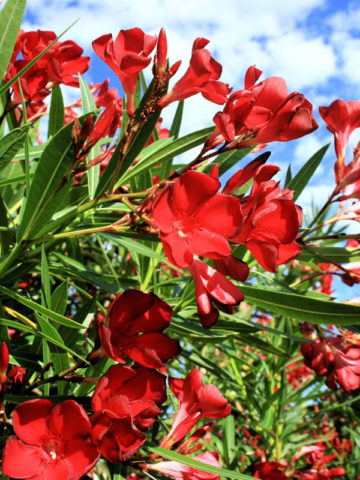 Versatile and exceptionally durable, Oleander is a worldwide favorite due to its ability to adapt to various soil types and climates. Abundant bright red flowers adorn this bush in clusters for weeks during season. Note: all parts of the plant are poisonous if consumed