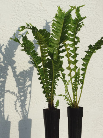 Before leaving, fern plants are inspected, watered, and pruned. Larger plants, generally those that ship in 8″ pots, will be topped to 36″ or 48″ overall, depending on the variety, if necessary to facilitate shipping. Your new plants’ pot is then bagged to ensure that the soil stays in the pot and not loose in the box. Plants are tissue or kraft paper wrapped and secured in place with natural biodegradable peanuts.
