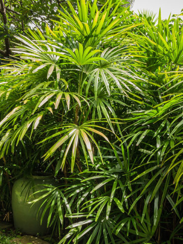 The growth rate of Clustering Lady Palms will vary greatly depending on soil type, sunlight, temperature and other factors. A few leaves are often trimmed prior to shipping to reduce transpiration and travel stress.