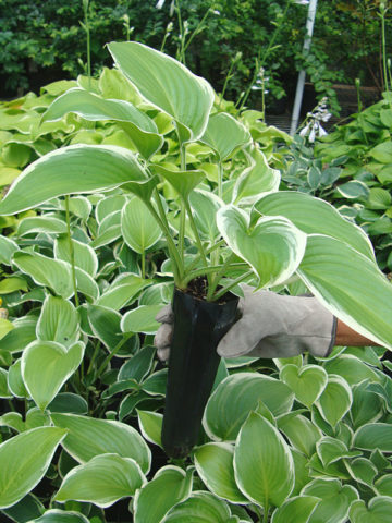 A medium sized clumping Hosta with ovate heart shaped pale green leaves of about 8 inches long with a narrow creamy yellow margin and slightly wavy edge. In late summer mauve-white flowers. These are very healthy, mature 3+ year old plants with very well established root systems.