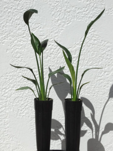 Before leaving, Juncea Leafless Bird of Paradise plants are inspected, watered, and pruned. Larger plants, generally those that ship in 8″ pots or with totems, will be topped to 36″ or 48″ overall, depending on the variety, if necessary to facilitate shipping. Your new plants’ pot is then bagged to ensure that the soil stays in the pot and not loose in the box. Plants are tissue or kraft paper wrapped and secured in place with natural biodegradable peanuts.