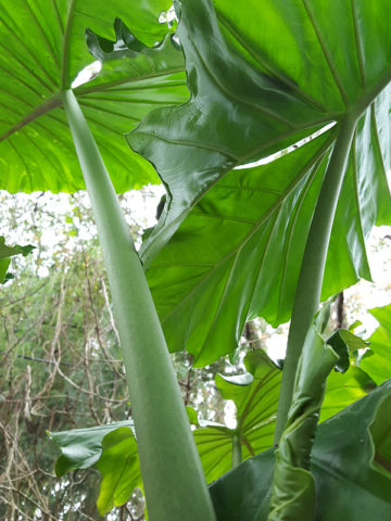 Before leaving, Portidora Cold Hardy Giant Alocasia plants are inspected, watered, and pruned. Larger plants, generally those that ship in 8″ pots or with totems, will be topped to 36″ or 48″ overall, depending on the variety, if necessary to facilitate shipping. Your new plants’ pot is then bagged to ensure that the soil stays in the pot and not loose in the box. Plants are tissue or kraft paper wrapped and secured in place with natural biodegradable peanuts.