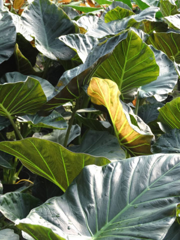 When you receive your new Alocasia, there is no need to worry about planting right away. Your new plant can be stored for a while by simply placing it in a bucket with about a half inch of water in the bottom and moving it to a shady location. You can then add some mulch to keep your plant standing upright. The mulch will also supply nutrients while in storage. This will give you plenty of time to select the ideal location for your new Alocasia.