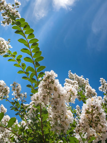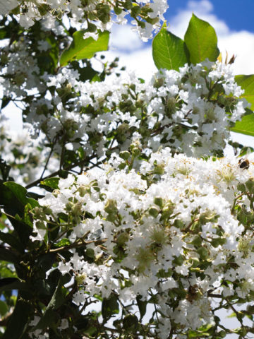 The growth rate, bloom quantity, color and size of Natchez will vary greatly depending on soil type, sunlight, temperature and other factors. A few leaves are often trimmed prior to shipping to reduce transpiration and travel stress.