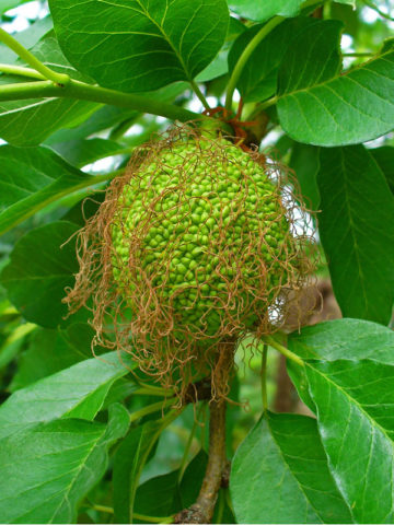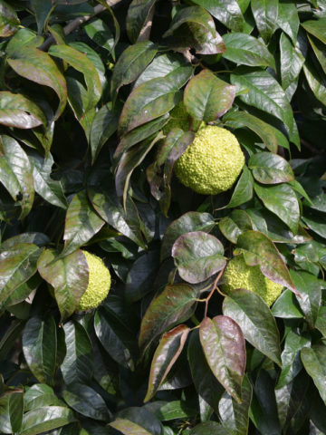 Named after the Osage Indians, the extremely durable, strong, flexible, yellow wood was harvested for used for bows by the native tribes and is now prized for railway ties and fence posts. This versatile tree produces a unique fruit that is bumpy in appearance with a slight citrus fragrance and is considered inedible due to its dry texture. While the fruit is not poisonous, the seeds are edible part and this typically soft-ball sized, yellow-green fruit, is often collected and used in exotic floral arrangements.