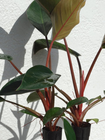 Before leaving, Rojo Congo Philodendron plants are inspected, watered, and pruned. Larger plants, generally those that ship in 8″ pots or with totems, will be topped to 36″ or 48″ overall, depending on the variety, if necessary to facilitate shipping. Your new plants’ pot is then bagged to ensure that the soil stays in the pot and not loose in the box. Plants are tissue or kraft paper wrapped and secured in place with natural biodegradable peanuts.