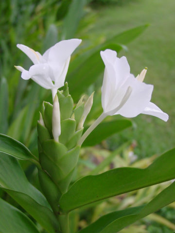 Our Purest White plants allow you to enjoy aromatic tropical blooms in the first year. All the Hedychium Ginger we offer are vegetatively propagated from healthy flowering mother stock, grown right here in our nursery. This means, you receive an exact clone, true in form and bloom and won’t have to wait years to enjoy fresh flowers, as is often the case with seed grown or tissue culture plants. Truly a superior ginger plant!