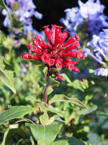 Brilliant clusters of red, mop head, trumpet shaped flowers. Fast-growing woody stems are clothed in deer-resistant leaves and from early summer to early. Newellii Red grows very well in patio containers. In the ground it will reach maturity at four to six feet in height with a three foot spread. These are very healthy plants with well established root systems.