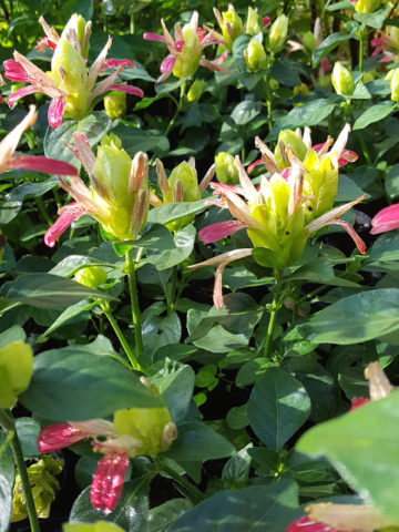 The growth rate, bloom size and color of Shrimp Cocktail will vary greatly depending on soil type, sunlight, temperature and other factors. A few leaves are often trimmed prior to shipping to reduce transpiration and travel stress.