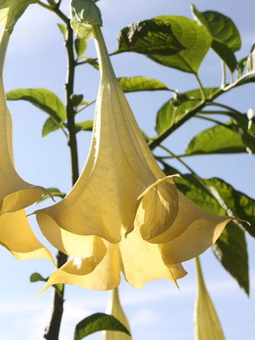 Our plants allow you to enjoy large blooms in the first year or so. All the Brugmansia we offer are vegetatively propagated from healthy, vigorous, flowering mother stock, grown right here in our nursery. This means, you receive an exact clone, true in form and won’t have to wait four to five years to enjoy the beautiful blooms, as is often the case with seed grown or tissue culture plants. Truly a better bloom!