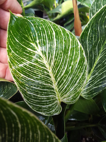 Before leaving, Birkin Variegata Philodendron plants are inspected, watered, and pruned. Larger plants, generally those that ship in 8″ pots or with totems, will be topped to 36″ or 48″ overall, depending on the variety, if necessary to facilitate shipping. Your new plants’ pot is then bagged to ensure that the soil stays in the pot and not loose in the box. Plants are tissue or kraft paper wrapped and secured in place with natural biodegradable peanuts.