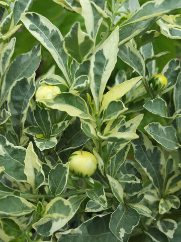 The growth rate of Variegated Jerusalem Cherry will vary greatly depending on soil type, sunlight, temperature and other factors. A few leaves are often trimmed prior to shipping to reduce transpiration and travel stress.