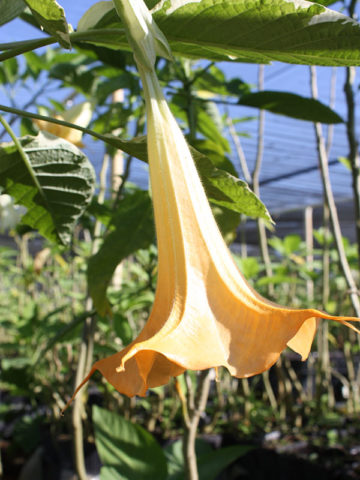 Our plants allow you to enjoy large blooms in the first year or so. All the Brugmansia we offer are vegetatively propagated from healthy, vigorous, flowering mother stock, grown right here in our nursery. This means, you receive an exact clone, true in form and won’t have to wait four to five years to enjoy the beautiful blooms, as is often the case with seed grown or tissue culture plants. Truly a better bloom!